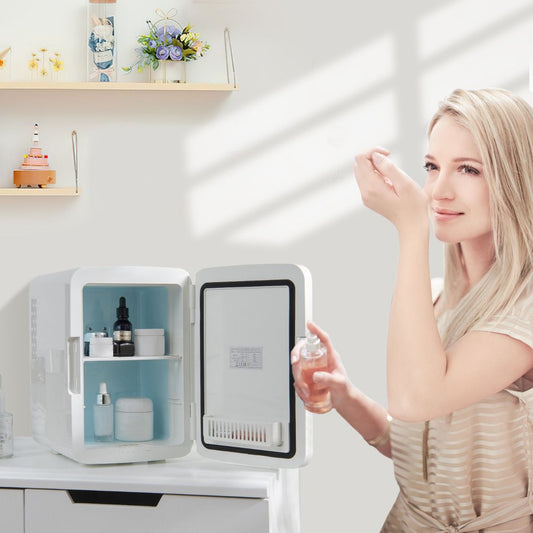 Mini Réfrigérateur De Maquillage Portable 10L Miroir LED Etagères Amovibles 12V DC/220V AC Refroidisseur Thermoélectrique