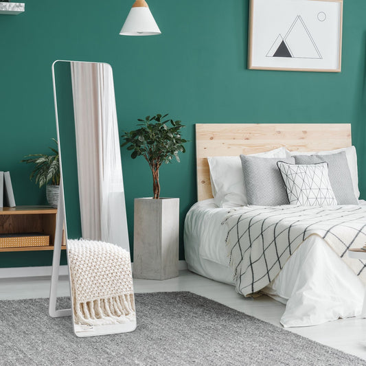 Miroir Autoportant Rectangulaire Pleine Longueur Cadre En Bois Massif 160 X 37Cm Blanc
